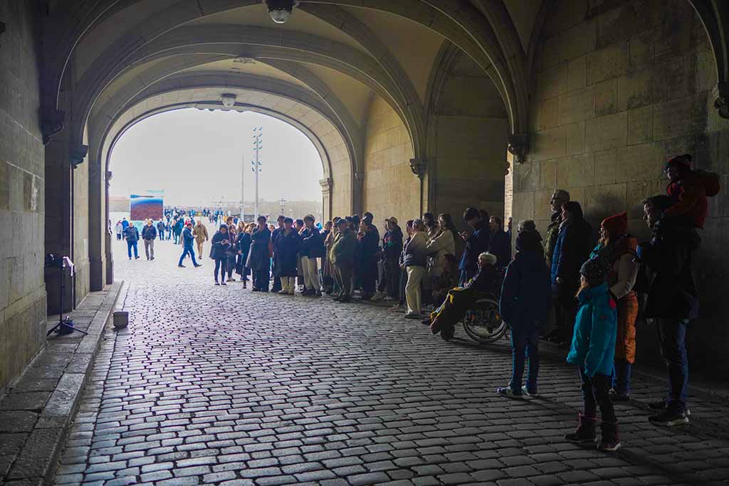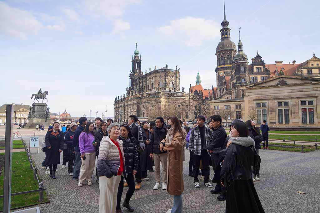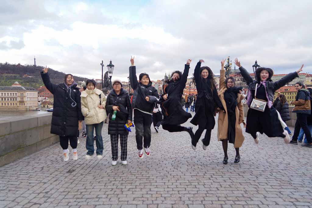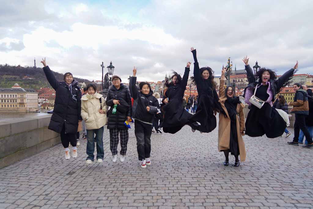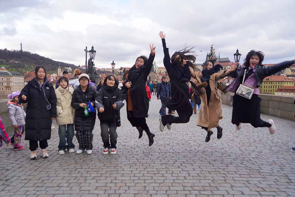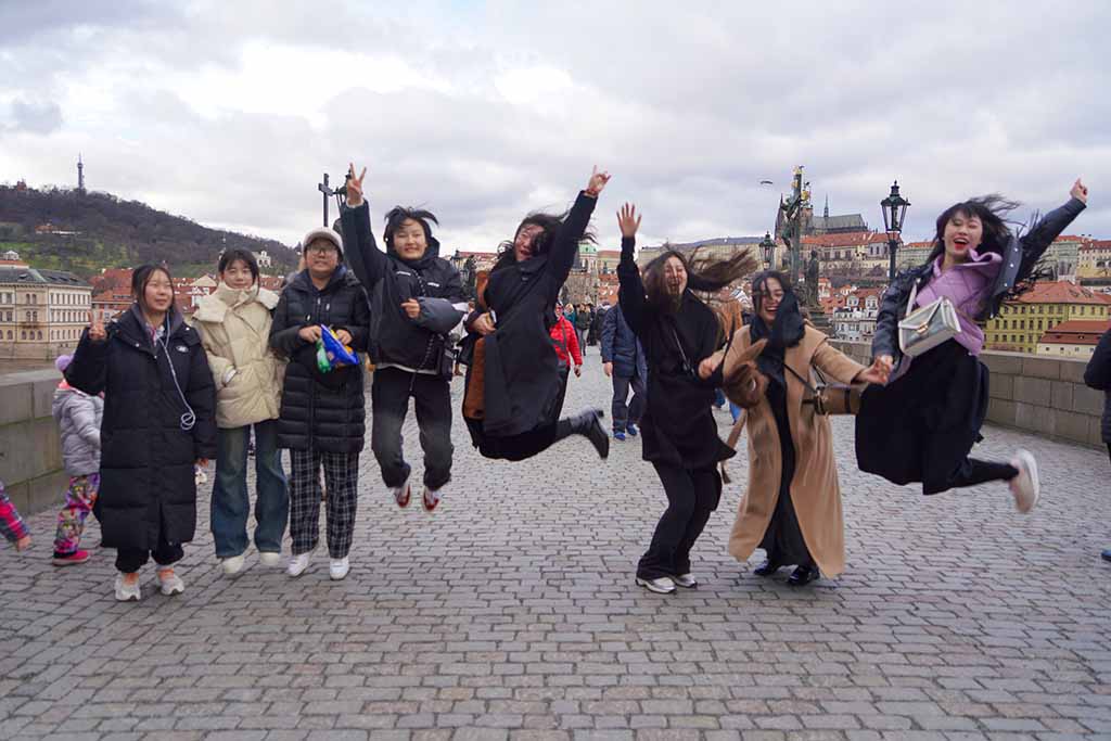 除了专业观摩、学习、比赛,欧洲的人文、历史、古迹也没有落下。在游历了柏林之后。 又先后在莱比锡参观了巴赫故居、门德尔松故居、圣托马斯教堂和音乐戏剧学院,在德累斯顿参观了茨温格宫,森帕歌剧院、圣母教堂、王侯队列瓷壁画墙,还在老城的百年餐厅享用德国特色晚餐,师生们以歌声、琴声助兴,兴致盎然。街头桥洞的艺术家也给中国的音乐家们莫大的启示。伏尔塔瓦河和查理大桥的景致令学员们欢呼雀跃。