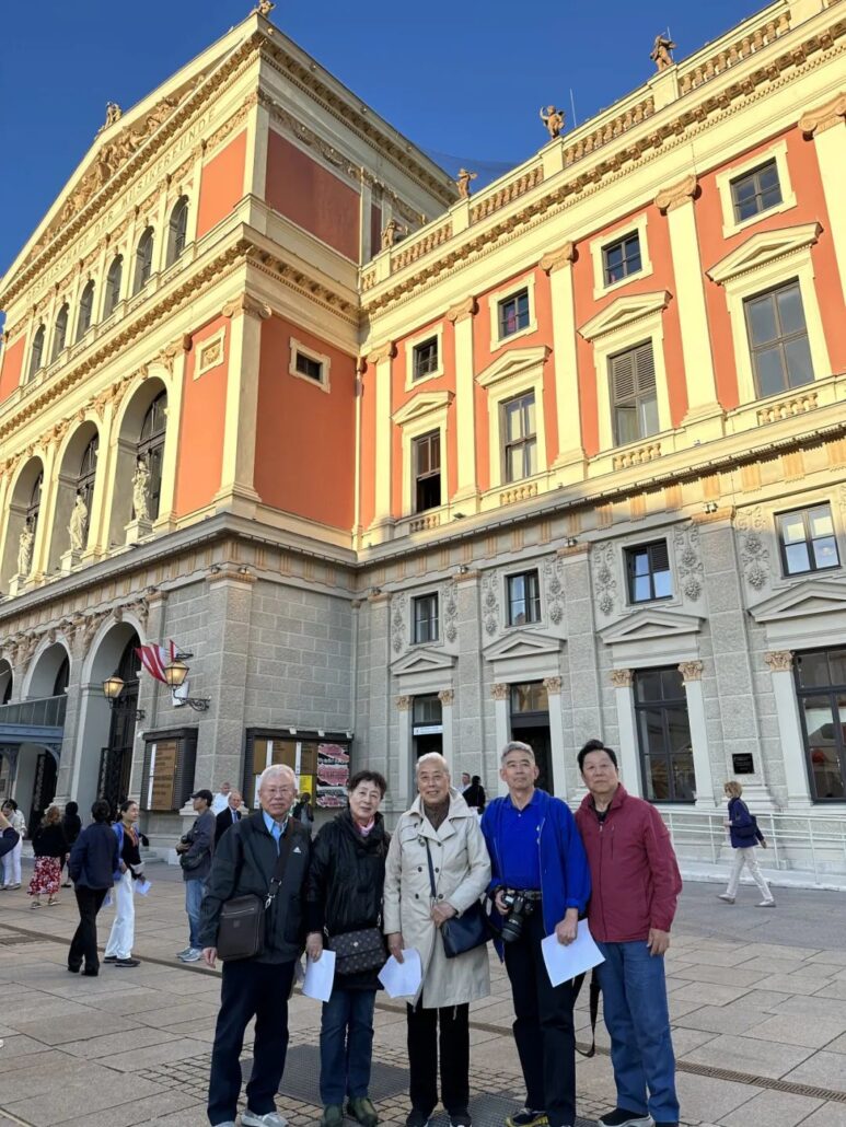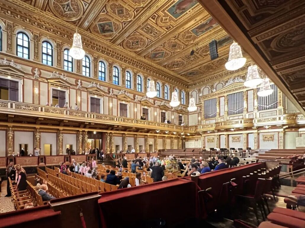 由于途中耽搁,到维也纳已经挺晚了。虽然大家都为金色大厅准备了盛装,我们却来不及更换了。好在大家的便装也已经很盛了。