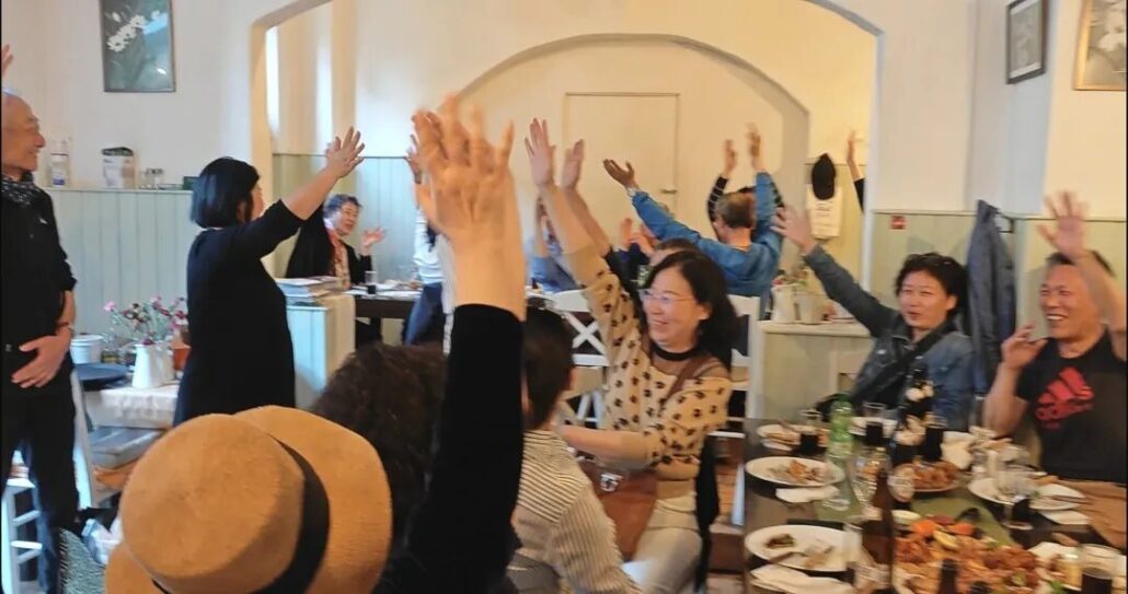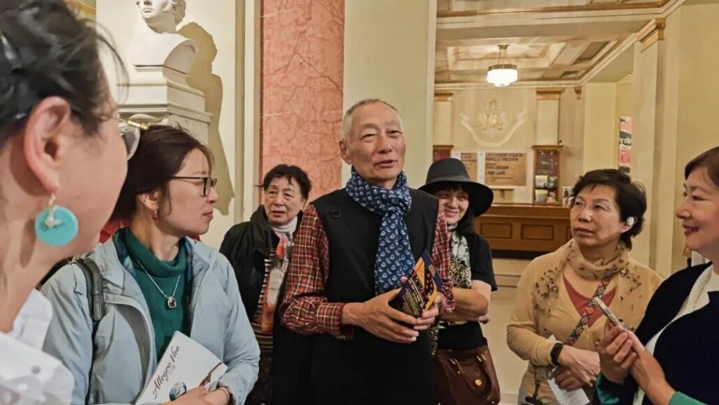 梁巍和陈立老师相继发言,感谢大家,相互感谢。向一直在幕后瞻前顾后的刘辉和韩英老师也致了谢意。陈立老师还要说什么不足之处,遭到大家当面否定,说“没有”。一致认为:10天的旅行不只文化艺术音乐了,大家还成了亲人。